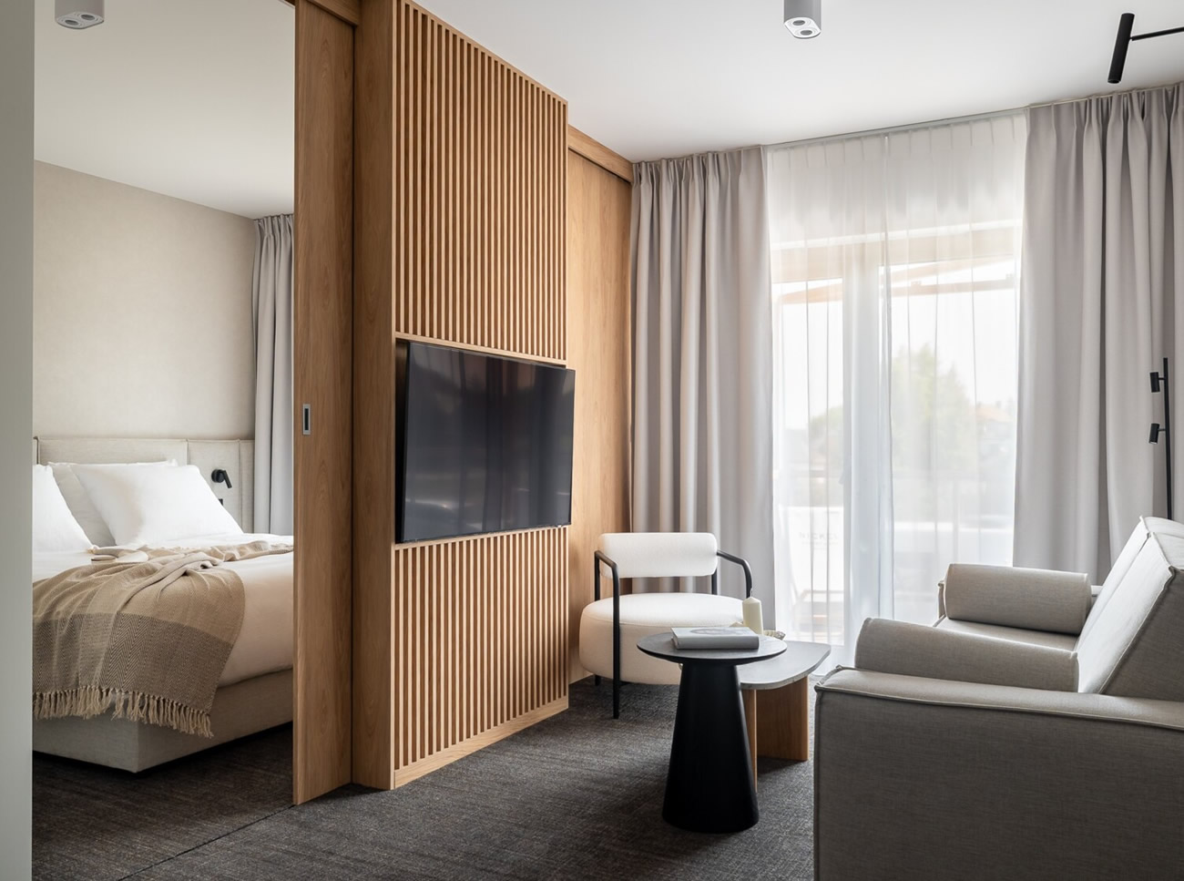 Elegante, in warmen Farben eingerichtete Zimmer laden zum Verweilen ein. Alle Zimmer sind komfortabel ausgestattet und garantieren Funktionalität. Zur Ausstattung gehören: Bad mit Dusche und WC, Fön, Minibar, TV, Kaffee- und Teezubereitungsset, Bademantel, WLAN. Entsprechend Ihren Bedürfnissen können Sie Doppelzimmer (ca. 18m²), Appartements (ca. 33m², zusätzliche Ausstattung: eine Schlafcouch und Küchenzeile) und Appartements Family (ca. 50m², 2 Ebenen, zusätzliche mit Schlafsofas ausgestattet) wählen.